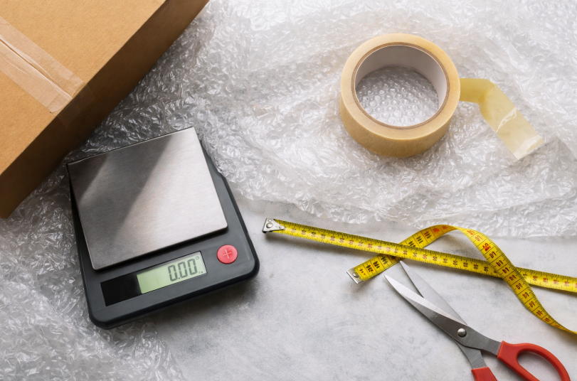 Don’t use a box that is too big for your items. Fill empty spaces with bubble wrap or paper to prevent damage, but keep the outer dimensions as small as possible to lower the volumetric weight.